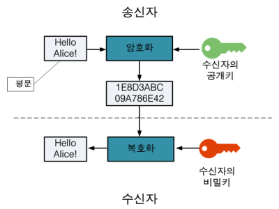 - 공개키 암호화: 공개키로 암호화를 하면 개인키로만 복호화 -> 해당 사용자만 열람 가능