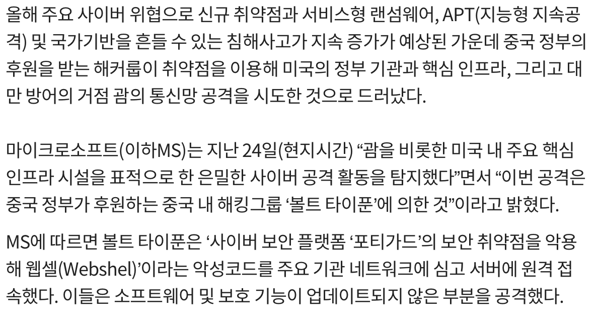 - 미국 정보기관도 보안 패치등이 최신화 되지 않으면 쉽게 취약점이 노출됨