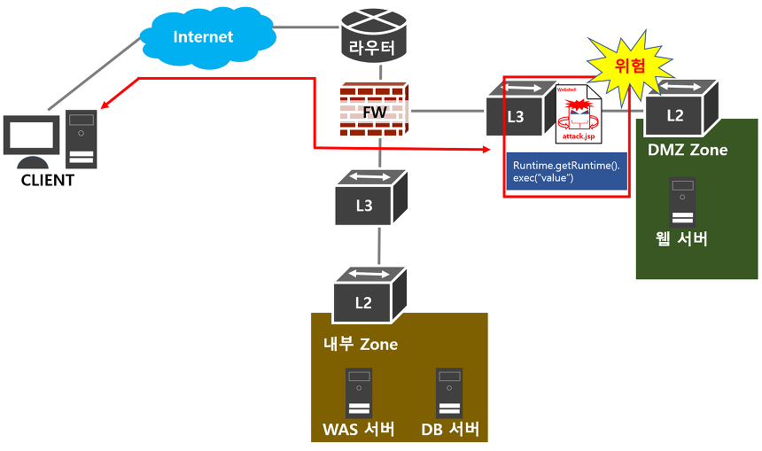 - 웹 사이트의 사용자들과 동일한 웹 서비스 포트(80, 443)를 통해 웹 쉘 업로드 및 공격이 이루어지기 때문에 탐지 및 차단이 어려움